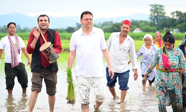 उत्तराखंड के खटीमा के नगला तराई क्षेत्र में उत्तराखंड के मुख्यमंत्री पुष्कर सिंह धामी ने शनिवार को अपने खेत में धान की रोपाई कर किसानों के परिश्रम, त्याग और समर्पण को नमन किया। उन्होंने कहा कि खेतों में उतरकर पुराने दिनों की यादें ताजा हो गईं। मुख्यमंत्री ने कहा कि अन्नदाता न केवल हमारी अर्थव्यवस्था की रीढ़ हैं, बल्कि वे हमारी संस्कृति और परंपराओं के संवाहक भी हैं।